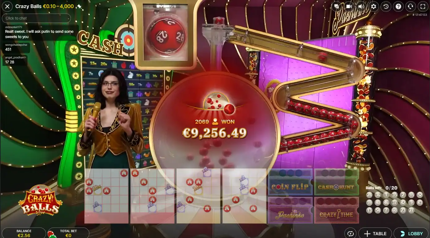 Bonus games in crazy balls live (dezelfde show, nieuwe instap)